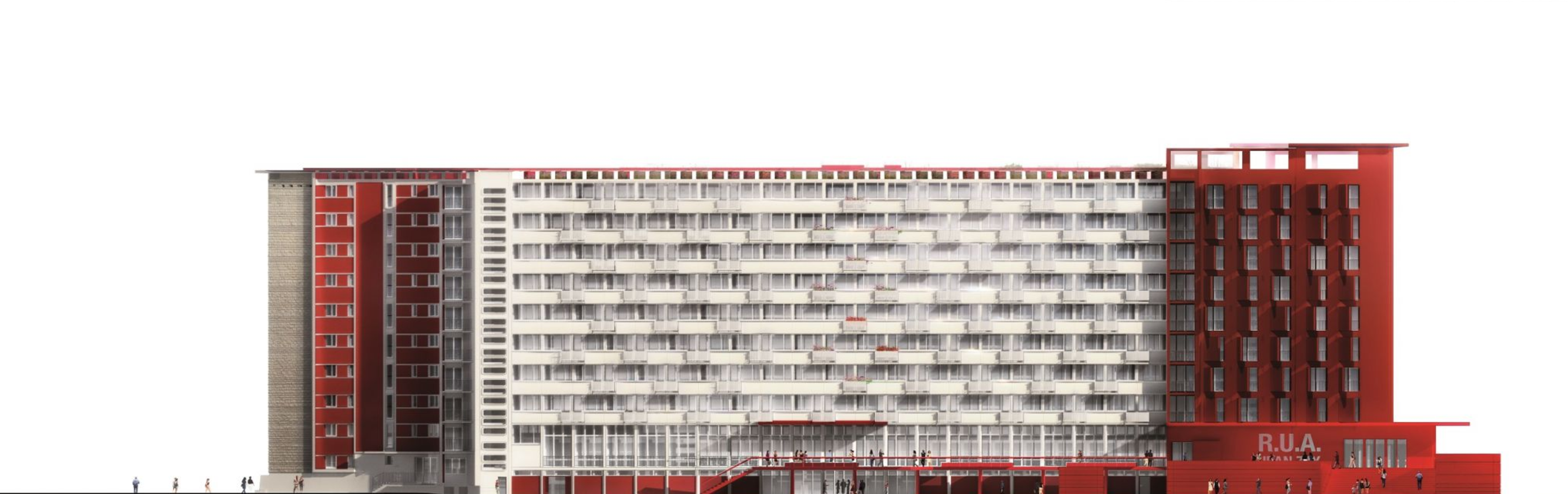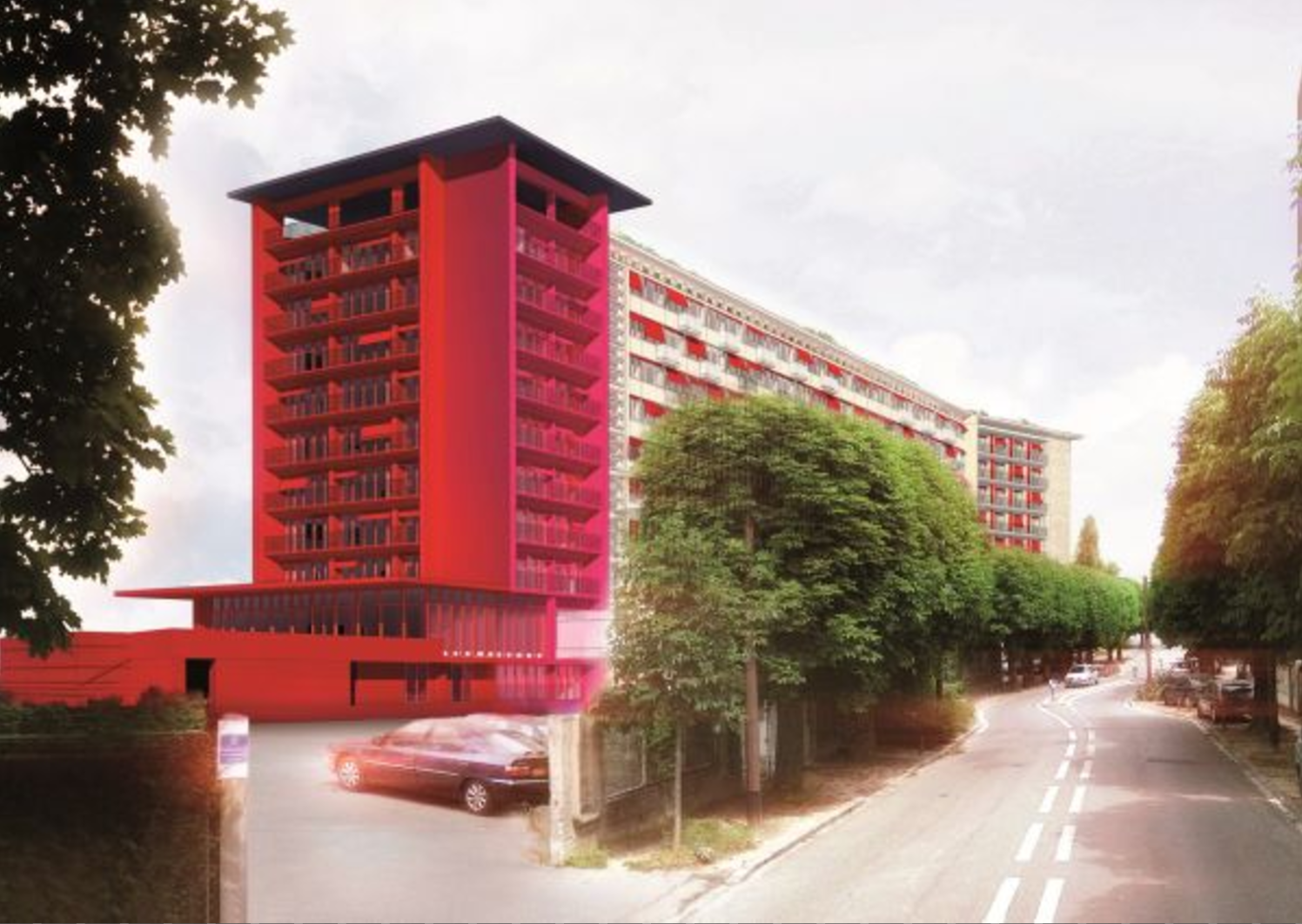 Grâce à ce remodelage par les Ateliers Jean Nouvel, cette résidence pour étudiants gagne 1870 mètres carrés de surface utile avec la construction d’une nouvelle aile qui a permis de conserver les 300 chambres existantes, les agrandir, et ajouter des chambres PMR et des appartements de fonction.