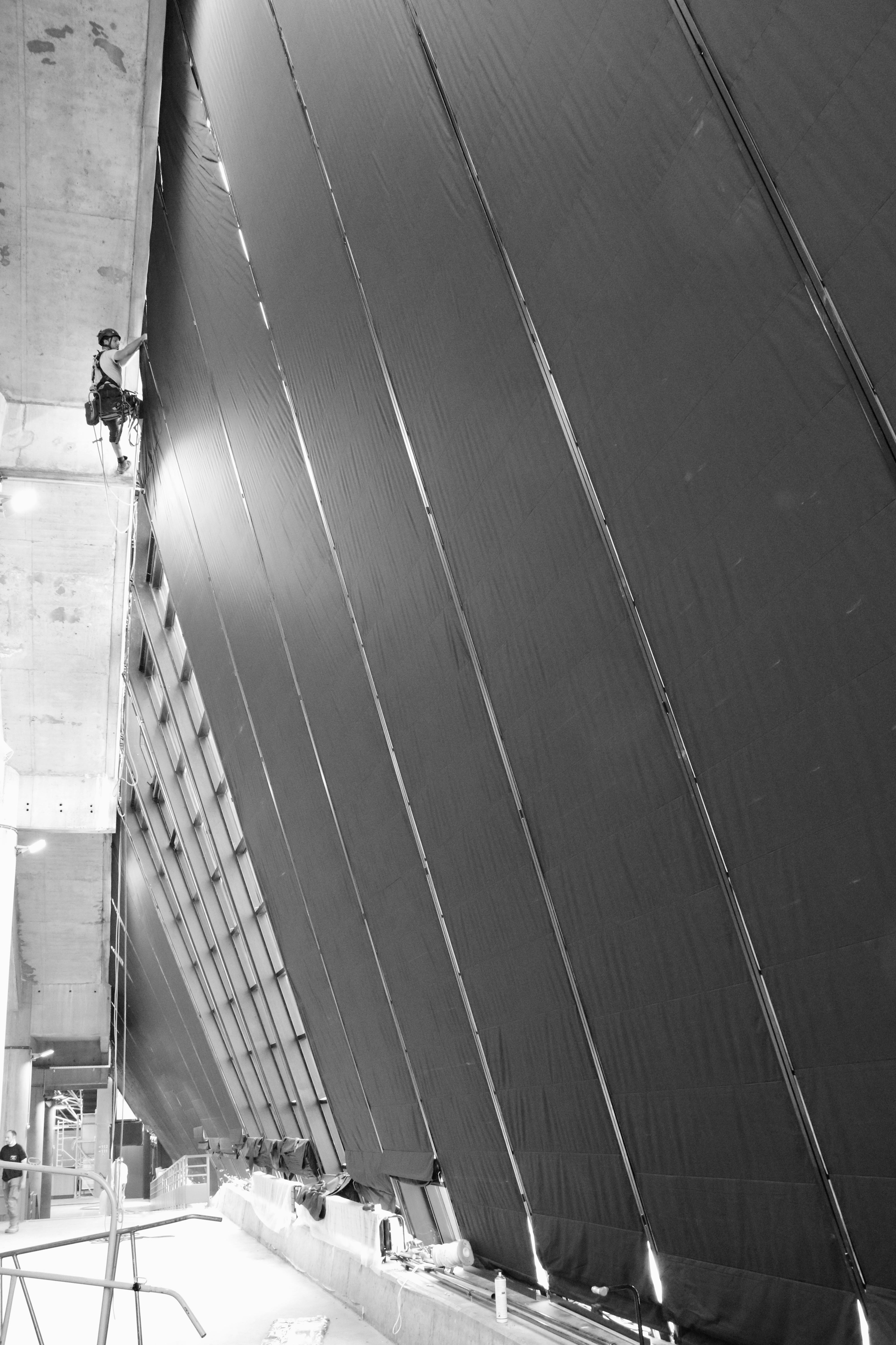 Concevoir, tester et poser 170 stores type Jardin d’Hiver 100% occultant pour obscurcir à 100% cette salle en cas de spectacles ou de concerts.170 stores, dont la plupart culminent à plus de 12 mètres de haut, manœuvrables électriquement et conjointement à l'aide d'un seul interrupteur.