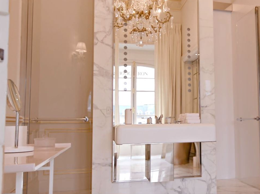 Le résultat est sublime. Le spectaculaire et l’élégance du classique revisité se côtoient dans un savant dosage. Malgré le cahier des charges exigeant de l’enseigne, l’Agence Rochon a su conserver la cohérence du lieu : depuis le grand hall jusqu’à la baignoire qui offre une vue imprenable sur la colonne Vendôme.