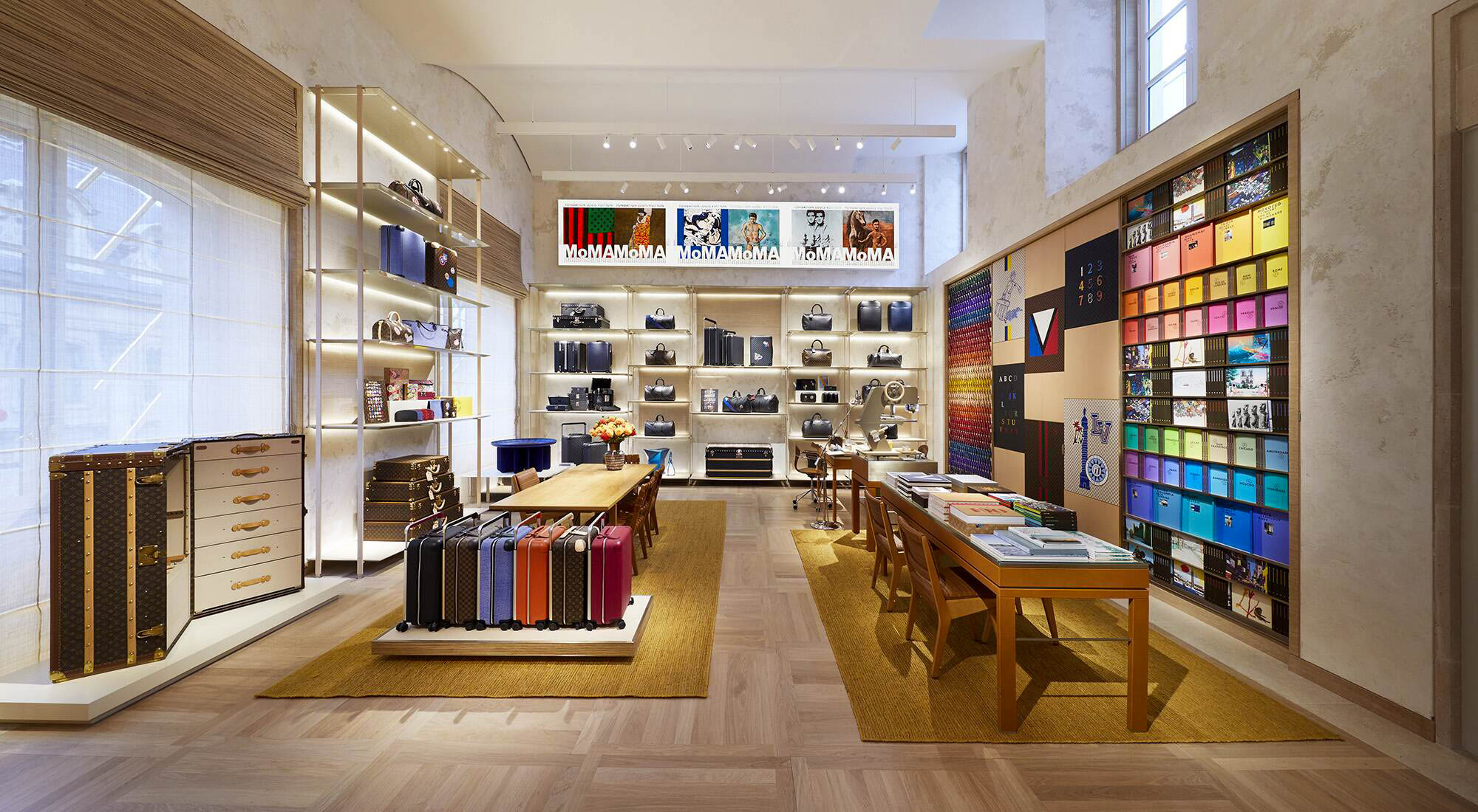 La Maison Louis Vuitton a inauguré en 2017 sa somptueuse boutique au sein de deux hôtels particuliers du XVIIIème siècle, l’un donnant sur la place Vendôme et l’autre s’étalant le long de la rue Saint-Honoré. Pour la création de ce nouvel établissement, le groupe LVMH a fait appel au fantasque Peter Marino.