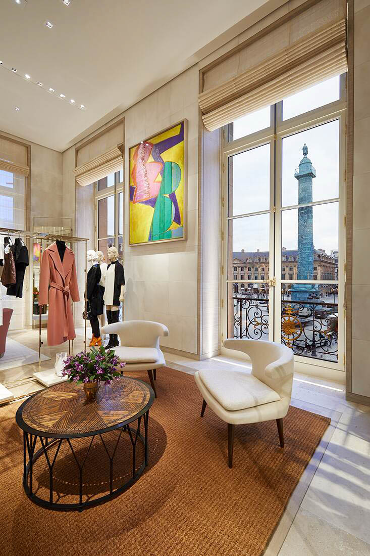 Le nouveau site niché sur quatre étages a entièrement fait peau neuve. L’ensemble des murs a été recouvert avec l'emblématique pierre de Paris pour recréer le rythme visuel perdu des deux bâtiments. L'architecte Peter Marino a souhaité préserver l'esprit des lieux tout en proposant une relecture contemporaine. Ainsi le sol est habillé d’un très élégant et traditionnel parquet de Versailles, en revanche le mobilier a été entièrement dessiné et réalisé sur mesure selon les traits modernes du célèbre cabinet. Un jeu de matière et de couleur finement dosé vient parfaire l’ensemble.